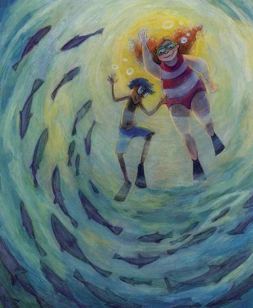 Illustrations are done in mixed media (acrylics, oil colors and colored pencils) on illustration board. Details and textures are worked in digitally.