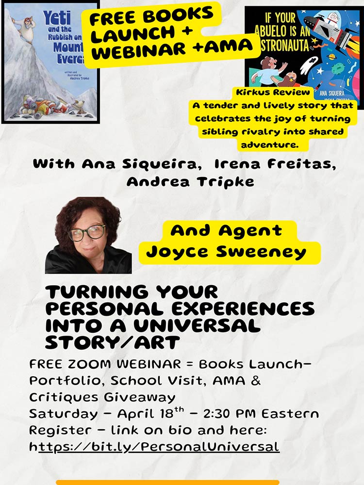Please join me for a books launch with author Ana Siqueira, illustrator Irena Freitas, agent Joyce Sweeney, and myself. Hope to see you! You can sign up here.